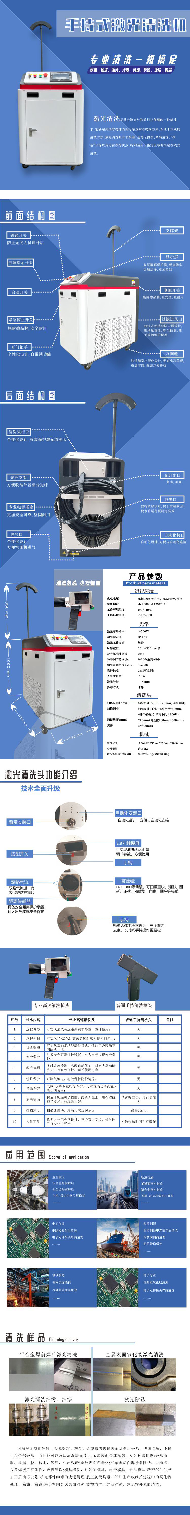 手持式激光除锈设备,便携式清洗除锈机,具有操作简单、清洗速度快、无接触、无变形、无污染等特性,效率更高,使用寿命更长,可按需定制等。