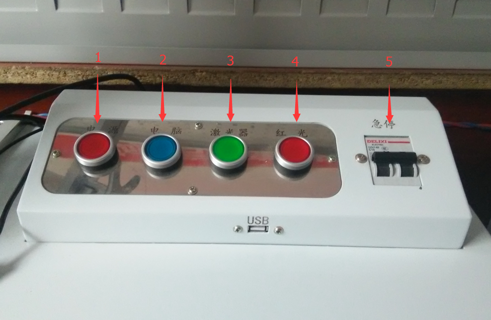 5)急停开关:常开,有紧急情况或发生故障时按下,切断主电路。