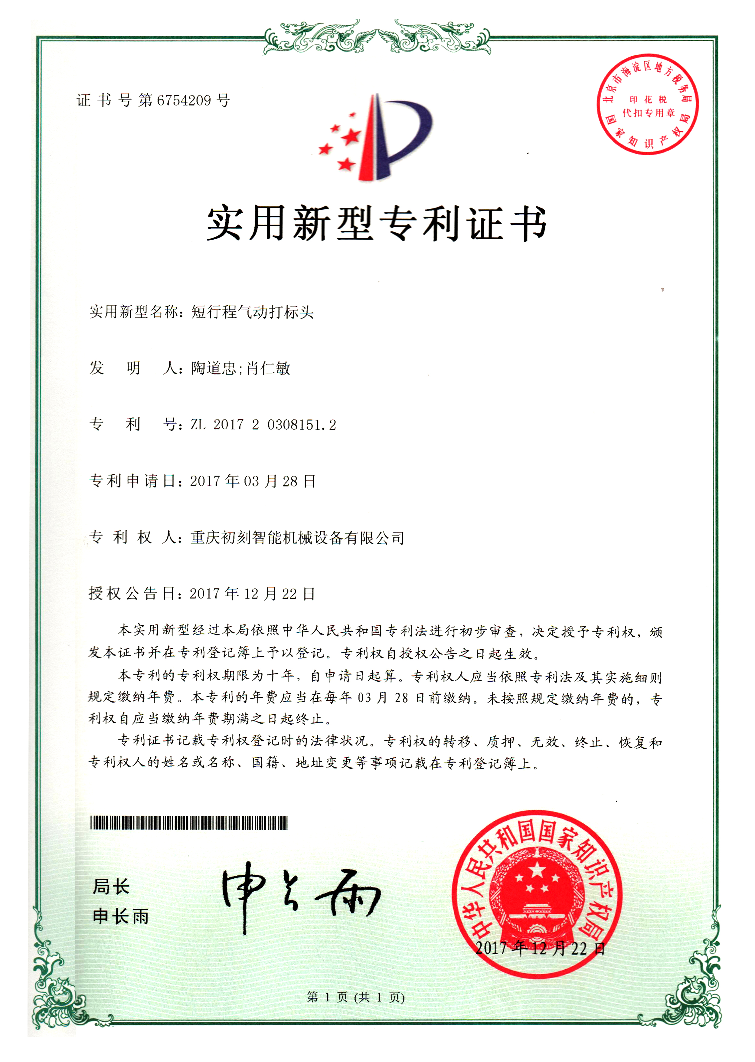 短行程气动打标机专利