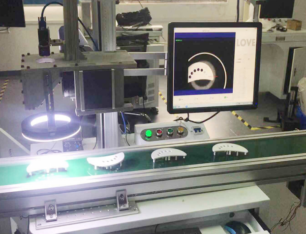 并且所加工的产品外形不限于圆形、方形、非规则形状都能够识别,所以这种工艺特别适合小产品,可免除定位料盘、固定夹具的加工,大大节省了激光打标加工周期。