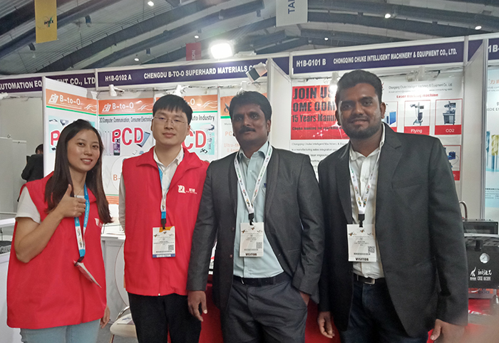 重庆初刻智能机械设备有限公司是一家进出口型企业,每年都会参加国内外各个大型展会,2019年1月27日受客户的一致邀约,我们又参加了印度班家诺尔工业机械设备展,携带的激光打标机,激光焊接机,二氧化碳激光打标机,紫外激光打标机等设备也收到印度客户的一致认可。